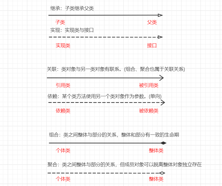 依赖<关联<聚合<组合<实现<继承(泛化)