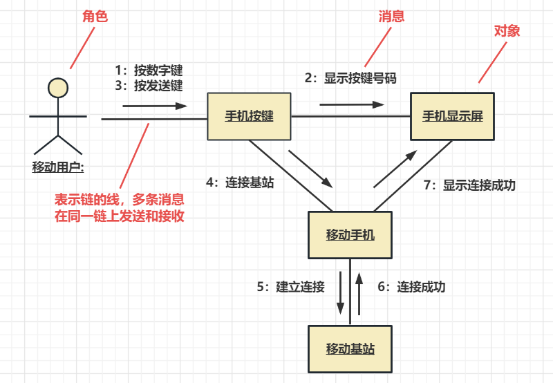 通信图也是一种交互图,它强调收发消息的对象或参与者的结构组织。顺序图和通信图表达了类似的基本概念,但它们所强调的概念不同,顺序图强调的是时序,通信图强调的是对象之间的组织结构(关系)。