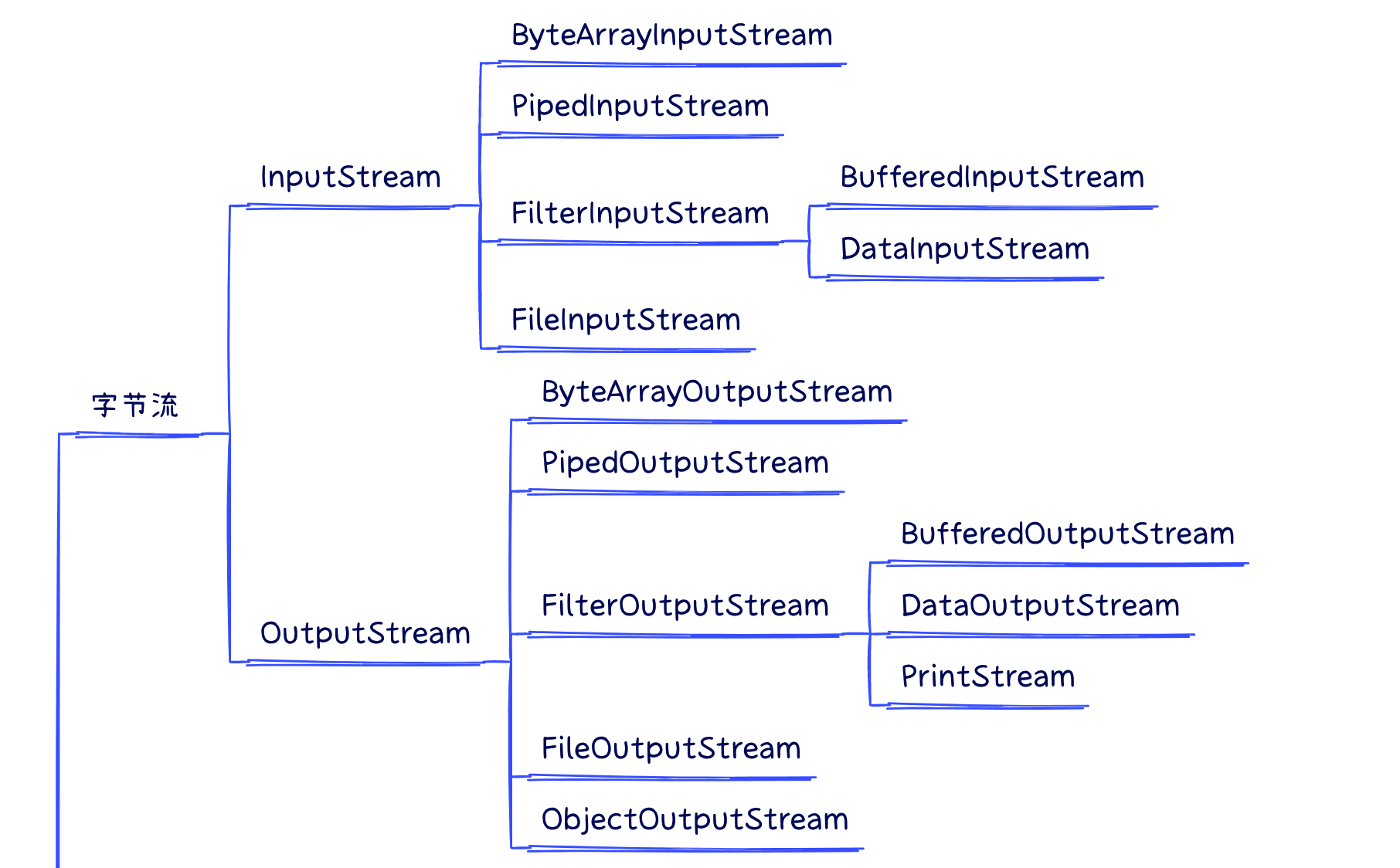 - 字节数组(byte[]): ByteArrayInputStream、ByteArrayOutputStream