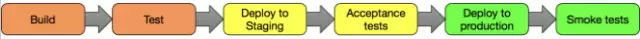 如果我们想更加深入一步的话,就是持续部署了。通过这个方式,任何修改通过了所有已有的工作流就会直接和客户见面。没有人为干预(没有一键部署按钮),只有当一个修改在工作流中构建失败才能阻止它部署到产品线。